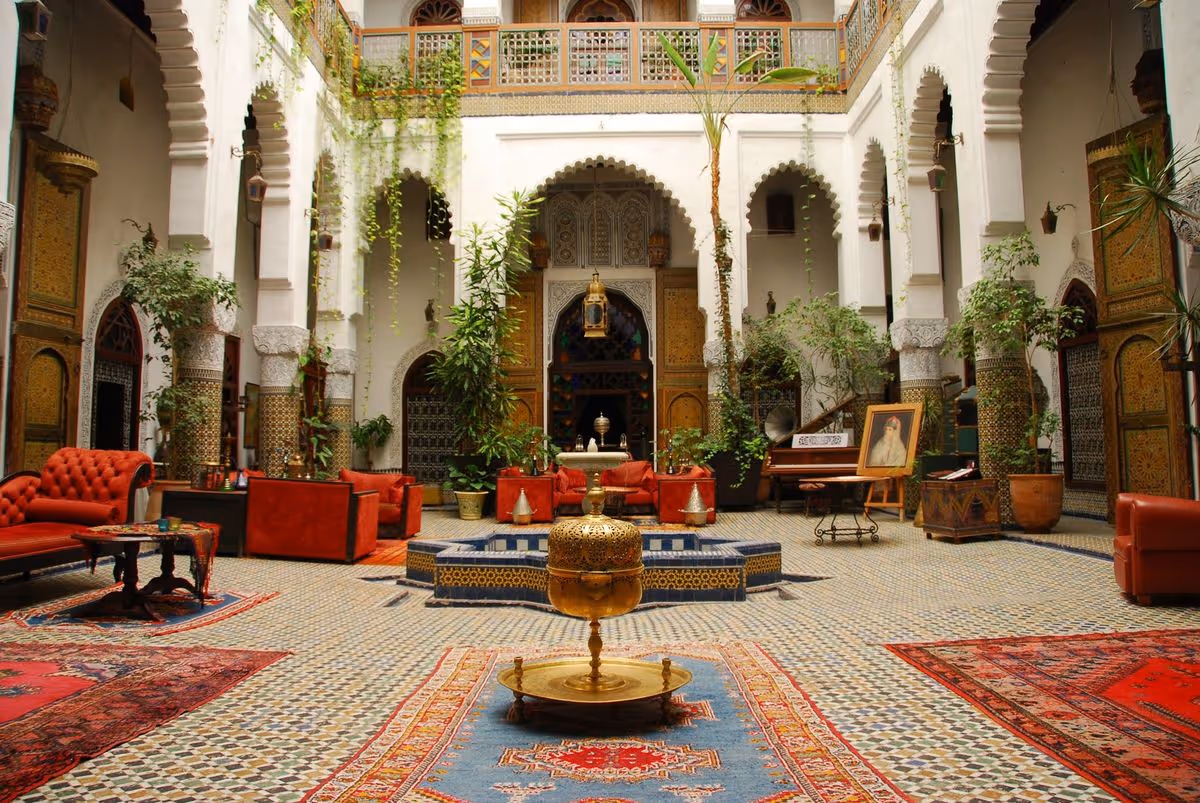The best ones feel like a private pause button. Carved cedar ceilings. zellige underfoot. A fountain in the centre. Six to eight rooms. Quiet staff who know the medina well.