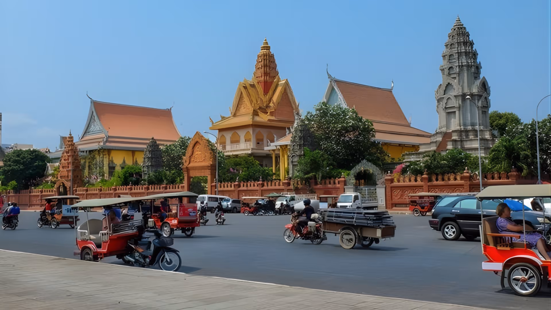 Cambodia sits in the southern stretch of Indochina, defined by the water that feeds it. It is often reduced to the temples of Angkor, but the reality is more layered. You feel it in Phnom Penh, where French colonial buildings and golden temple roofs stand near the memory of a darker recent history.