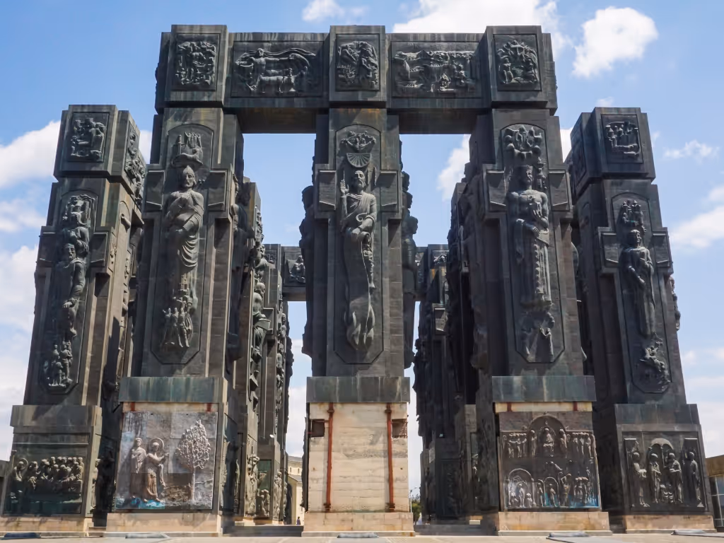 Later, travel to the Chronicle of Georgia, a monumental series of sculpted pillars overlooking the reservoir.